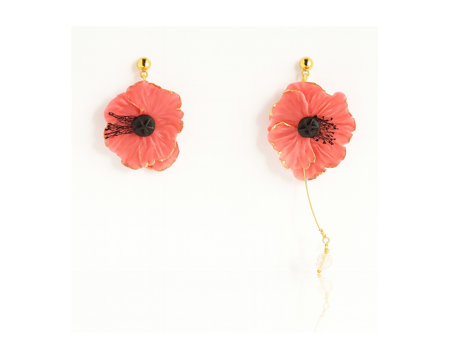 Pendientes Amapola Asimétrico Coral · ALMALAU